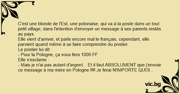 - Mais je n'ai pas autant d'argent... Et il faut ABSOLUMENT que j'envoie ce message à ma mère en Pologne !!!! Je ferai N'IMPORTE QUOI pour ça !!!!