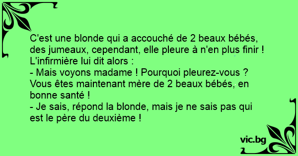 - Je sais, répond la blonde, mais je ne sais pas qui est le père du deuxième !