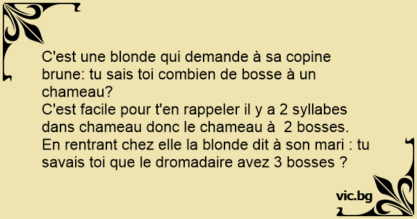 C'est une blonde qui demande à sa copine brune: tu sais toi combien de bosse à un chameau?