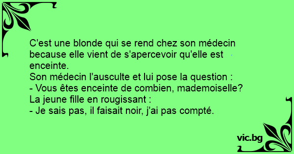 C'est une blonde qui se rend chez son médecin because elle vient de s'apercevoir qu'elle est enceinte.