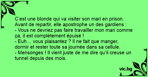 C’est une blonde qui va visiter son mari en prison. Avant de repartir, elle apostrophe un des gardiens :