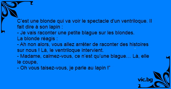 C’est une blonde qui va voir le spectacle d'un ventriloque. Il fait dire à son lapin :