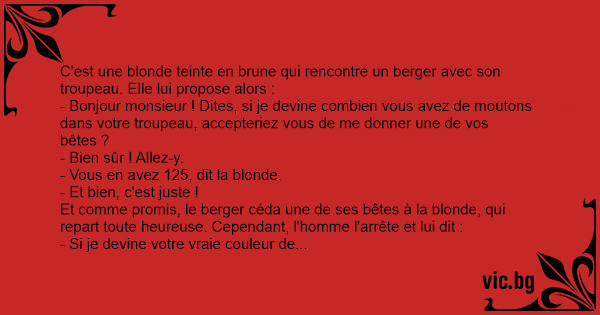 C'est une blonde teinte en brune qui rencontre un berger avec son troupeau. Elle lui propose alors :