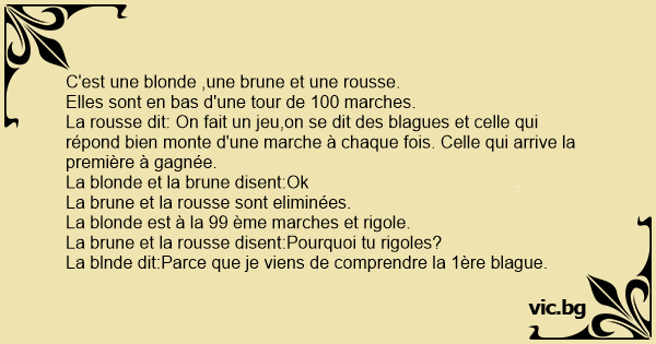 La blnde dit:Parce que je viens de comprendre la 1ère blague.