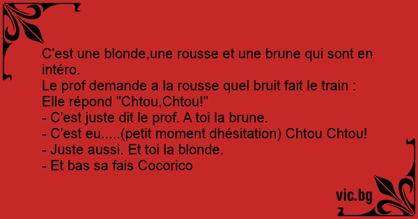 Le prof demande a la rousse quel bruit fait le train : Elle répond "Chtou,Chtou!"