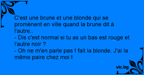 C'est une brune et une blonde qui se promènent en ville quand la brune dit à l'autre..