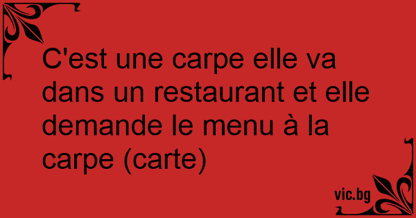 C'est une carpe elle va dans un restaurant et elle demande le menu à la carpe (carte)