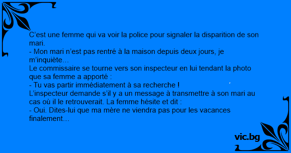 L’inspecteur demande s’il y a un message à transmettre à son mari au cas où il le retrouverait. La femme hésite et dit :