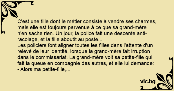 Finalement, lorsque toutes les filles ont donné leur identité et sont passées devant le policier, vient le tour de la grand-mère. Le policier lui demande: