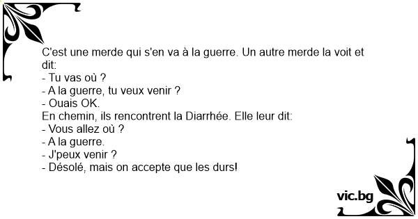 C'est une меrdе qui s'en va à la guerre. Un autre меrdе la voit et dit:
