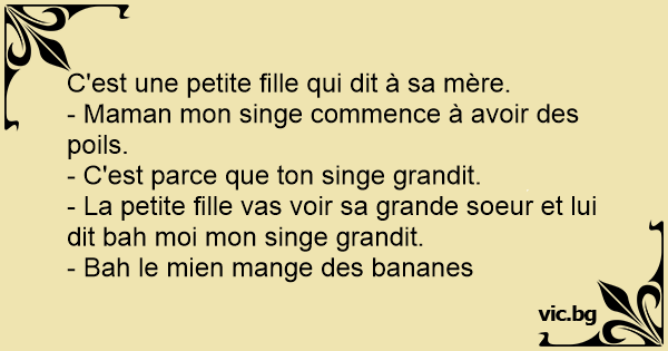 - La petite fille vas voir sa grande soeur et lui dit bah moi mon singe grandit.