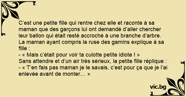 - « Mais c’était pour voir ta culotte petite idiote ! »