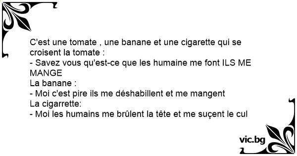 C'est une tomate , une banane et une cigarette qui se croisent la tomate :
