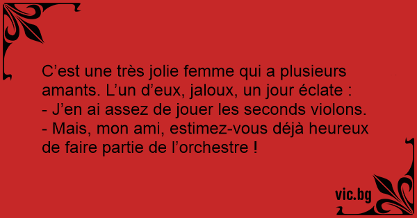 C’est une très jolie femme qui a plusieurs amants. L’un d’eux, jaloux, un jour éclate :