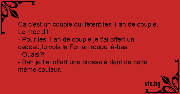 - Pour les 1 an de couple je t'ai offert un cadeau,tu vois la Ferrari rouge là-bas.