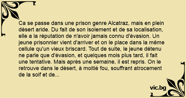 - Quoi? c'est vrai ? Pourquoi tu ne me l'as pas dit durant tous ces mois où je préparais mon évasion ? Pourquoi ne pas m'avoir dit tout de suite que c'était impossible ?