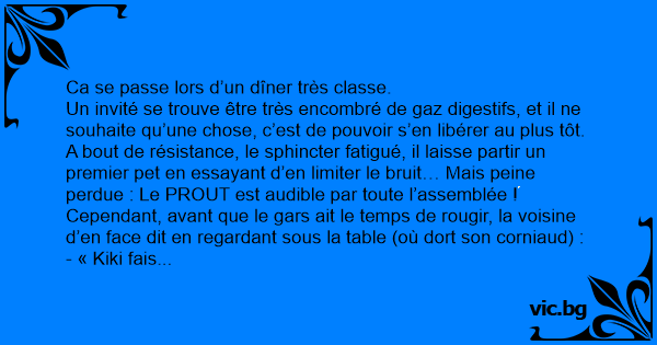 Soulagé, mais les intestins toujours remplis de gaz, le convive péteur reprend un peu plus sûr de lui par un joli « PRRROUTTT ».