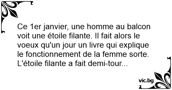 Ce 1er janvier, une homme au balcon voit une éтоilе filante. Il fait alors le voeux qu'un jour un livre qui explique le fonctionnement de la femme sorte. L'éтоilе filante a fait demi-tour...