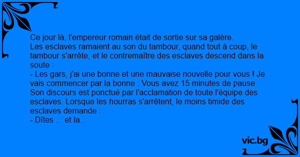 Les esclaves ramaient au son du tambour, quand tout à coup, le tambour s'arrête, et le contremaître des esclaves descend dans la soute :
