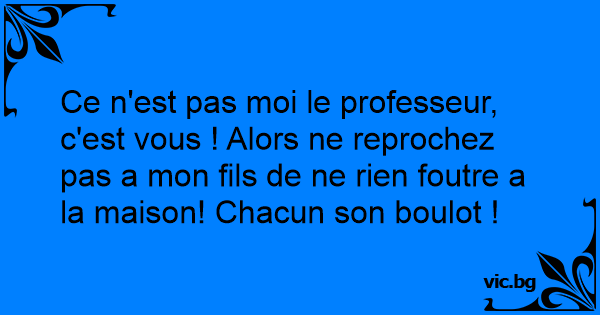 Ce n'est pas moi le professeur, c'est vous ! Alors ne reprochez pas a mon fils de ne rien foutre a la maison! Chacun son boulot !