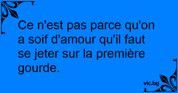 Ce n'est pas parce qu'on a soif d'amour qu'il faut se jeter sur la première gourde.