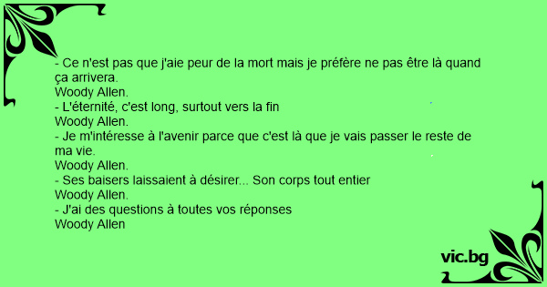 - Ce n'est pas que j'aie peur de la mort mais je préfère ne pas être là quand ça arrivera.