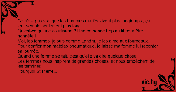 Ce n’est pas vrai que les hommes mariés vivent plus longtemps ; ça leur semble seulement plus long.