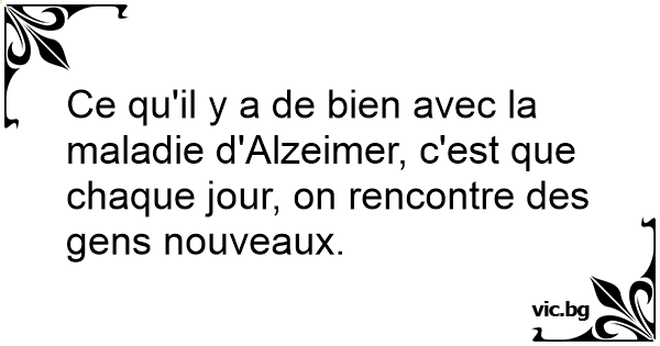 Ce qu'il y a de bien dans la maladie d'Alzheimer :C'est qu'on peut toute l'année chercher les oeufs de Pâques que l'on a cachésOn se fait tous les jours de nouveaux amis