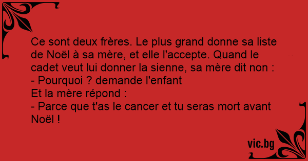 - Parce que t'as le cancer et tu seras mort avant Noël !
