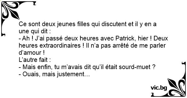 - Mais enfin, tu m’avais dit qu’il était sourd-muet ?