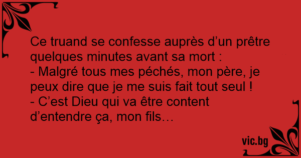 - Malgré tous mes péchés, mon père, je peux dire que je me suis fait tout seul !