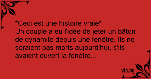 Un couple a eu l'idée de jeter un bâton de dynamite depuis une fenêtre. Ils ne seraient pas morts aujourd'hui, s'ils avaient ouvert la fenêtre...