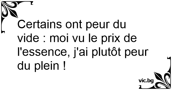 Certains ont peur du vide : moi vu le prix de l'essence, j'ai plutôt peur du plein !