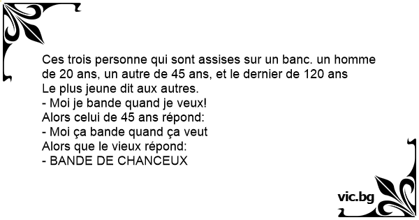 Ces trois personne qui sont assises sur un banc. un homme de 20 ans, un autre de 45 ans, et le dernier de 120 ans