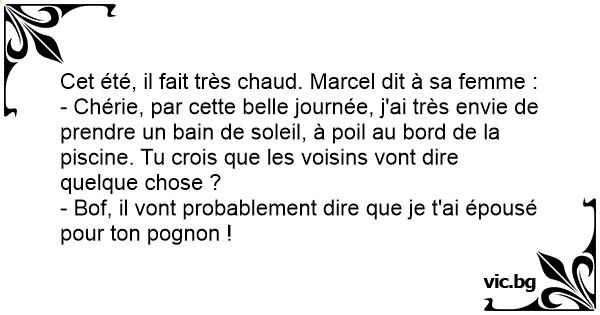Cet été, il fait très chaud. Marcel dit à sa femme :