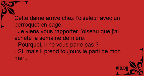 - Je viens vous rapporter l’oiseau que j’ai acheté la semaine dernière.
