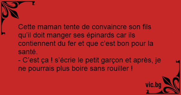 - C’est ça ! s’écrie le petit garçon et après, je ne pourrais plus boire sans rouiller !