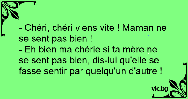 - Eh bien ma chérie si ta mère ne se sent pas bien, dis-lui qu'elle se fasse sentir par quelqu'un d'autre !