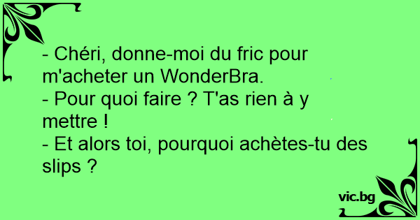 - Chéri, donne-moi du fric pour m'acheter un WonderBra.