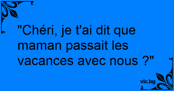 "Chéri, je t'ai dit que maman passait les vacances avec nous ?"