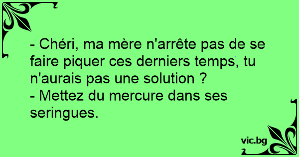 - Chéri, ma mère n'arrête pas de se faire piquer ces derniers temps, tu n'aurais pas une solution ?