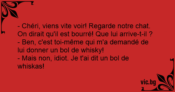 - Mais non, idiот. Je t'ai dit un bol de whiskas!