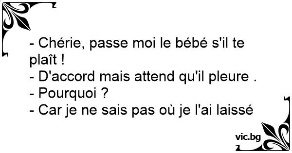 "Schatz, wir müssen warten bis das Baby weint." "Warum den das?" "Ich weiß nicht, wo ich es hingelegt habe."