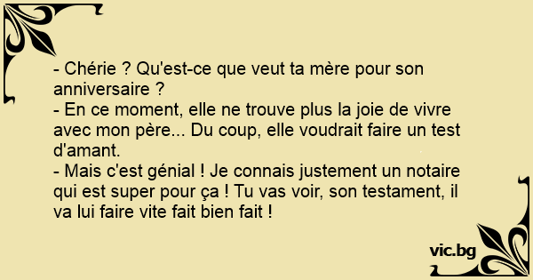 - Chérie ? Qu'est-ce que veut ta mère pour son anniversaire ?