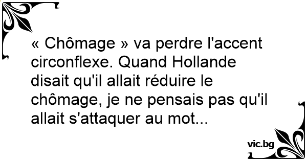 « Chômage » va perdre l'accent circonflexe. Quand Hollande disait qu'il allait réduire le chômage, je ne pensais pas qu'il allait s'attaquer au mot...