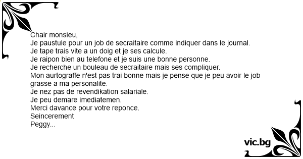 Mon aurtograffe n'est pas trai воnnе mais je pense que je peu avoir le job grasse a ma personalite.