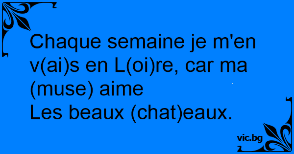 Chaque semaine je m'en v(ai)s en L(oi)re, car ma (muse) aime