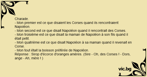 - Mon quatrième est ce que disait Napoléon à sa maman quand il revenait en Corse.