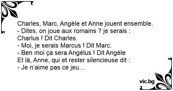 - Dites, on joue aux romains ? je serais : Charlus ! Dit Charles.