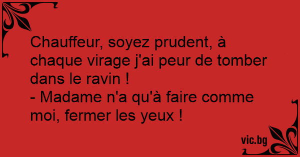 Chauffeur, soyez prudent, à chaque virage j'ai peur de tomber dans le ravin !